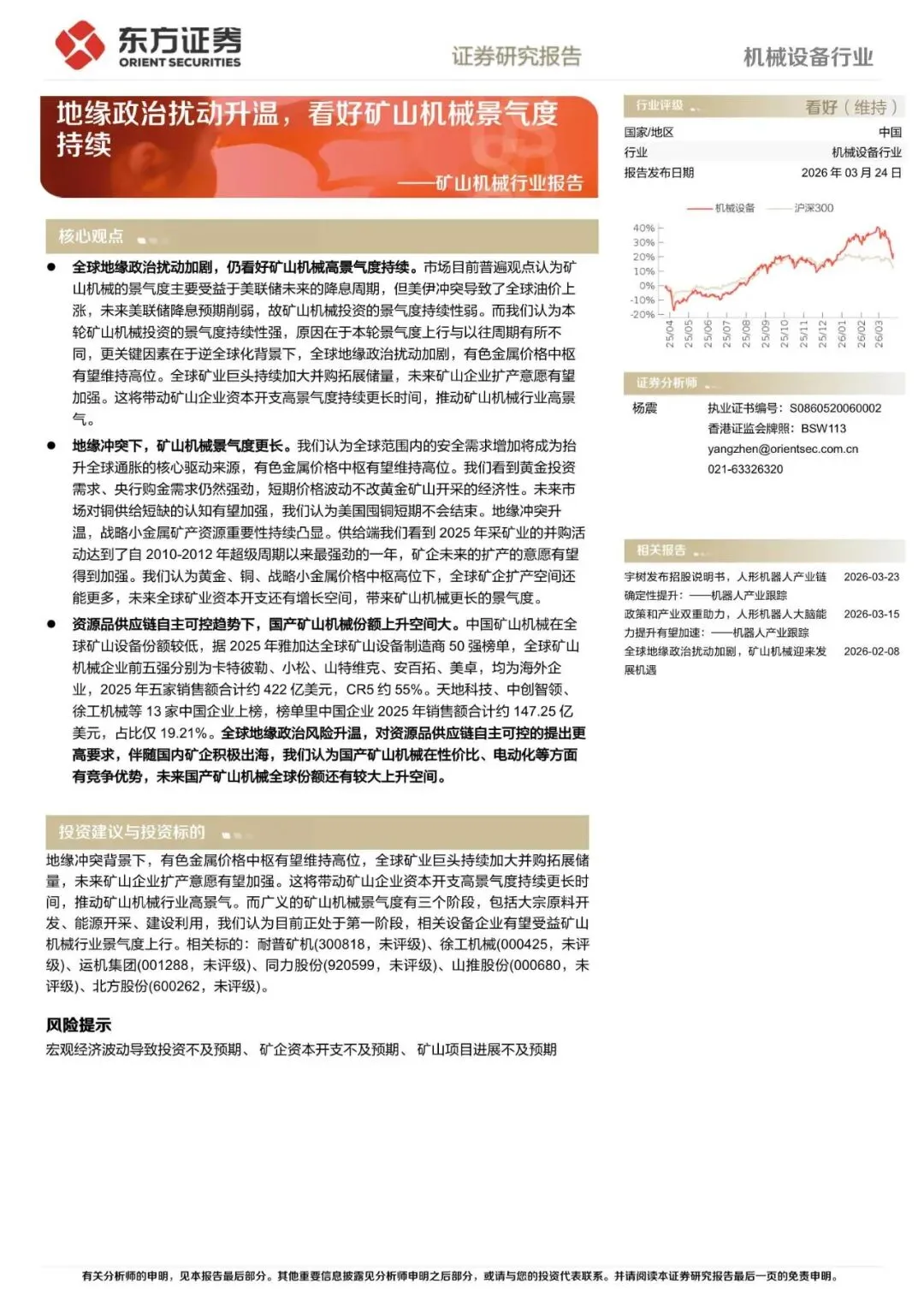 回复暗号:矿山机械行业报告:地缘政治扰动升温,看好矿山机械景气度持续-260324-东方证券-28页