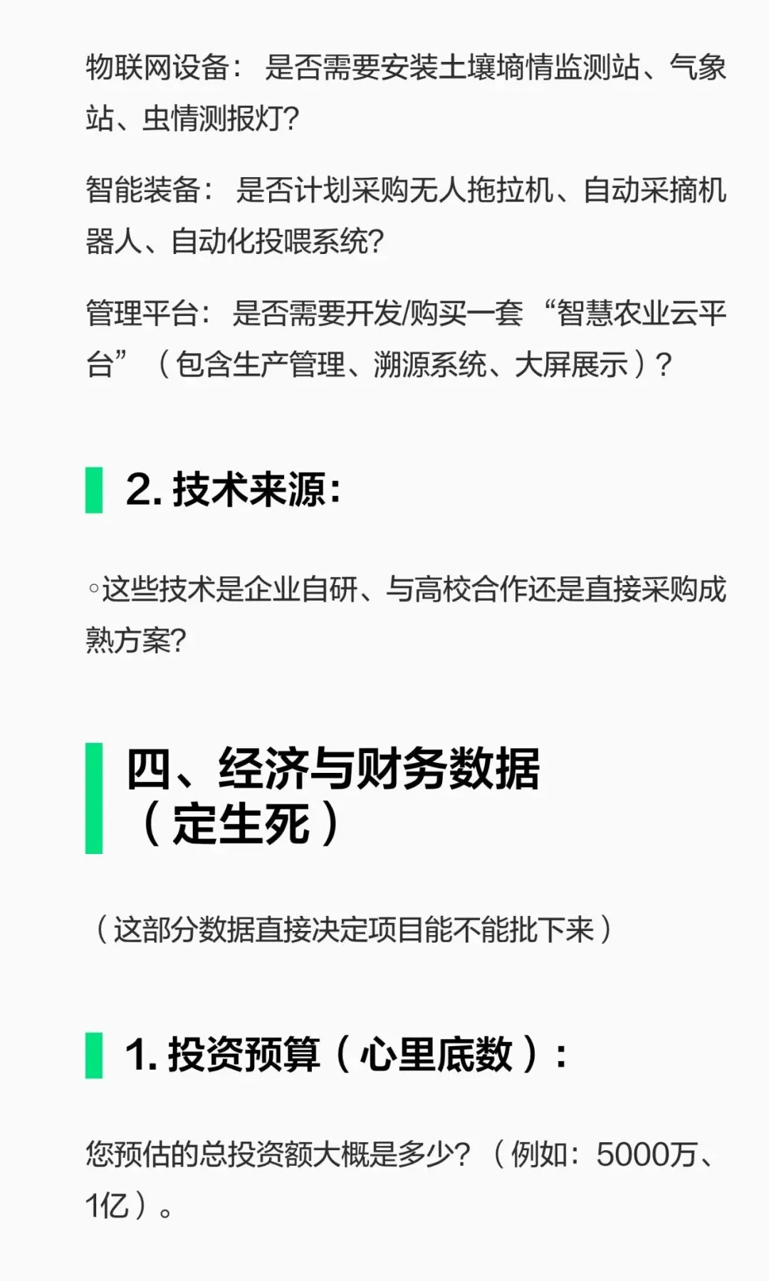 智慧农业项目可行性研究报告编制需求清单