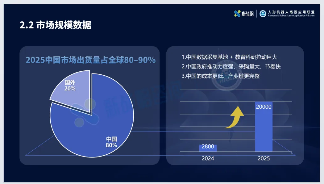 2025年中国是人形机器人量产元年,出货量超2万台、广义市场规模90亿元,占全球出货量80%-90%,30%产品销往海外。教育科研、数据采集为核心应用场景,宇树科技、智元机器人占据近50%市场份额,头部效应显著。行业融资超578亿元,新品发布超166款,产品价格大幅下降,双足机型降幅尤为明显。