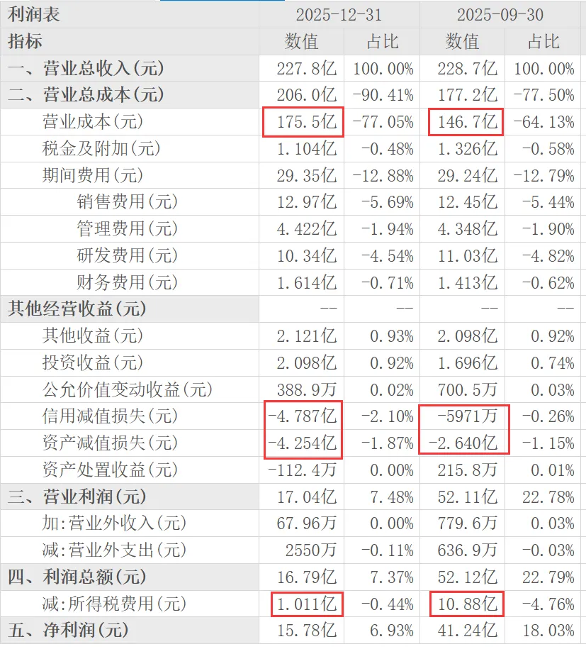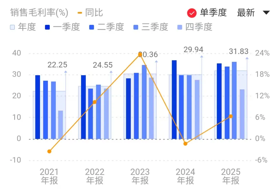 2025年四季度毛利率降到了22.95%,而三季度是35.87%。