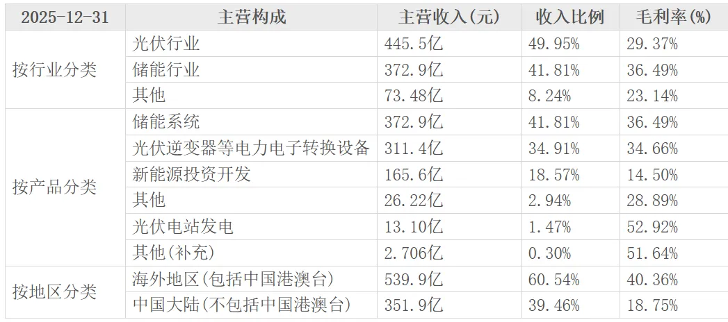上图是年报营收结构,也是看毛利率,储能是36.49%,逆变器是34.66%,新能源是14.5%。这三个加起来占总营收95%+。