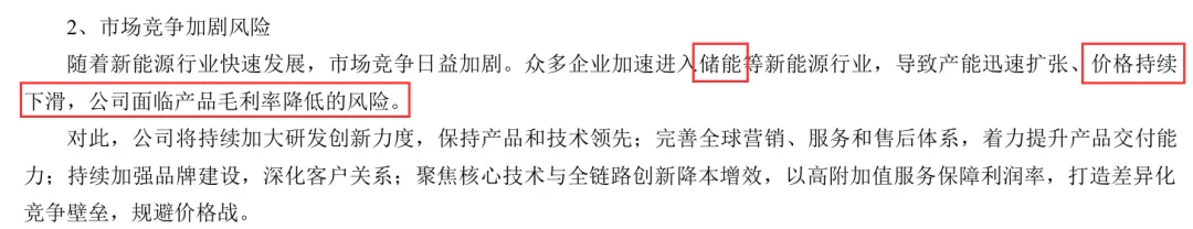 成本上涨和价格下降的双重压力,最终导致了储能业务的毛利率大幅下滑。