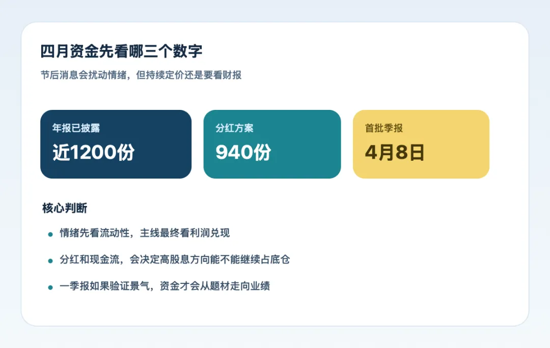 4月的短线波动,可能还是会被消息面带着走;但真正能走成主线的方向,最后都得靠业绩和现金回报来验证。