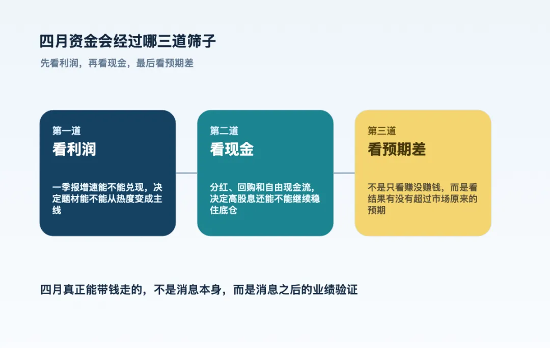 因为到了4月,很多模糊叙事会开始失效。前面还能讲“预期”、讲“催化”、讲“估值修复”,可一旦年报和一季报陆续出来,市场就会变得很现实:利润到底有没有兑现,订单到底有没有延续,现金流到底稳不稳,管理层对接下来怎么判断。