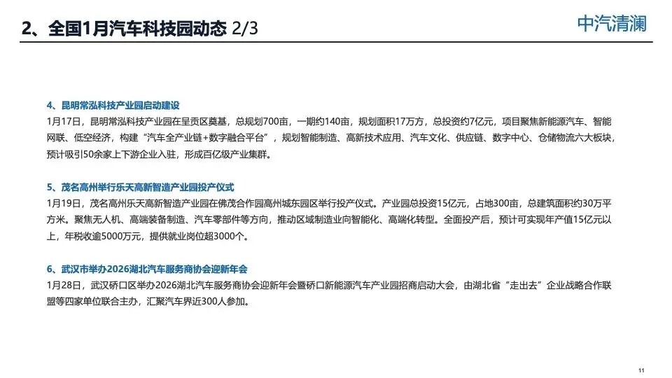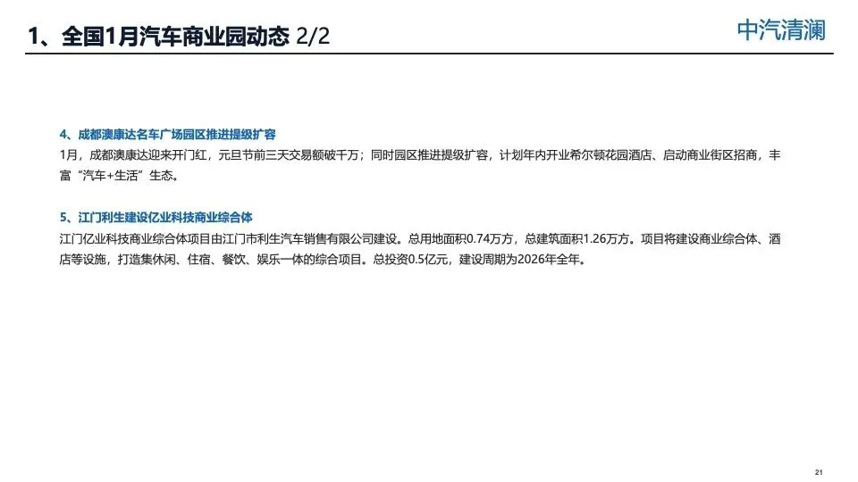 全国汽车园2026年1月投资报告