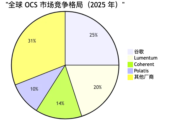 全球 OCS 市场呈现**"头部集中"格局,前四大厂商(谷歌、Lumentum、Polatis、Coherent)市占率约69%**。