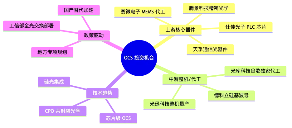 优选上游核心器件:技术壁垒高、价值量大、国产替代空间大 关注整机/代工龙头:直接对接头部客户,受益放量弹性大 布局下一代技术:CPO、硅光等长期趋势明确 分散风险:避免单一客户依赖,关注多元化布局企业 长期持有:OCS 产业化进入加速期,长期成长空间广阔