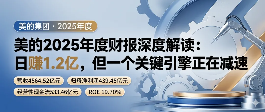 当一家年营收超过4500亿的制造业巨轮,在成熟的家电红海中依然能保持双位数增长时,市场通常会报以掌声。美的集团2025年的成绩单,乍看之下正是如此:营收增长12%,净利润增长14%,日赚超过1.2亿元。然而,当我们像侦探一样深入财报的肌理,会发现一个看似完美的增长故事背后,正闪烁着几盏值得警惕的黄色信号灯。最核心的矛盾在于:利润在增长,但创造这些利润的“现金引擎”却在减速。这是一份典型的“喜忧参半”的财报,它讲述的不仅是一个龙头企业的稳健,更是一个转型中的巨头所面临的真实挑战。