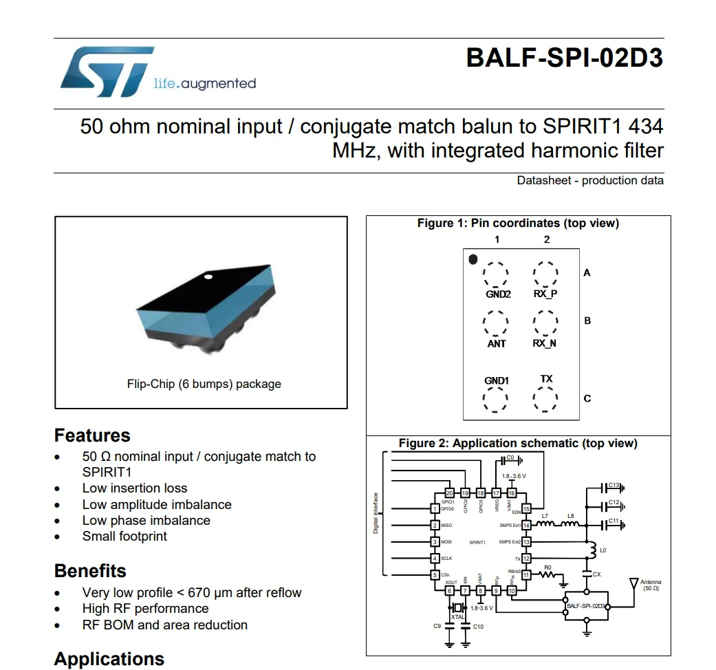 这是BALF超微型巴伦系列芯片BALF-SPI-02D3?,集成了匹配网络和谐波滤波器,并在非传导的玻璃层上采用ST的IPD技术,最突出的优势在于极致的集成度与简化的设计。