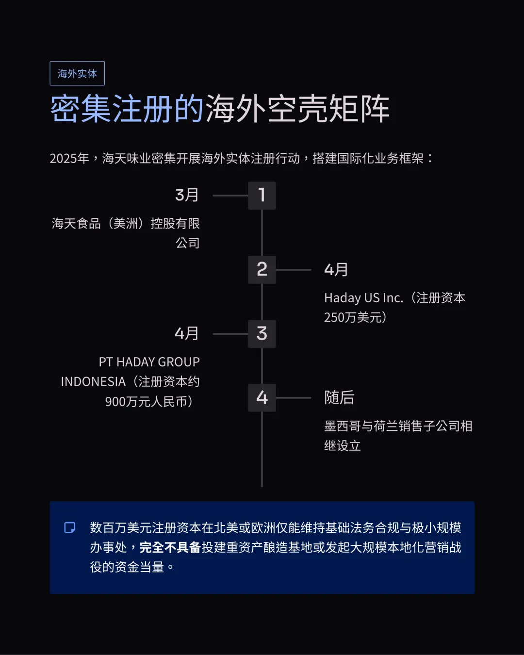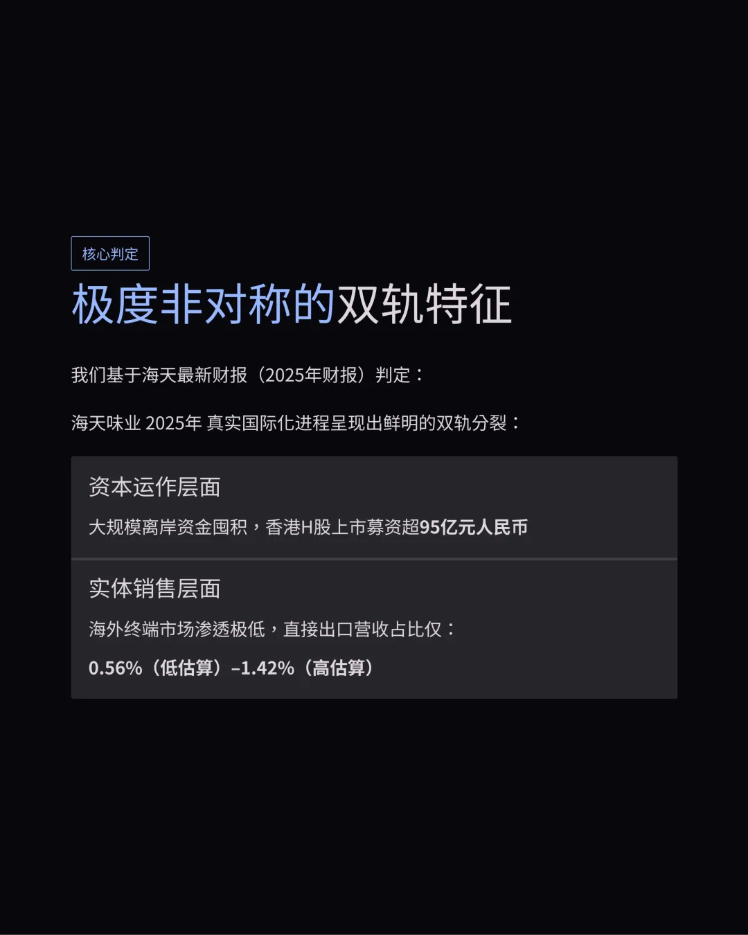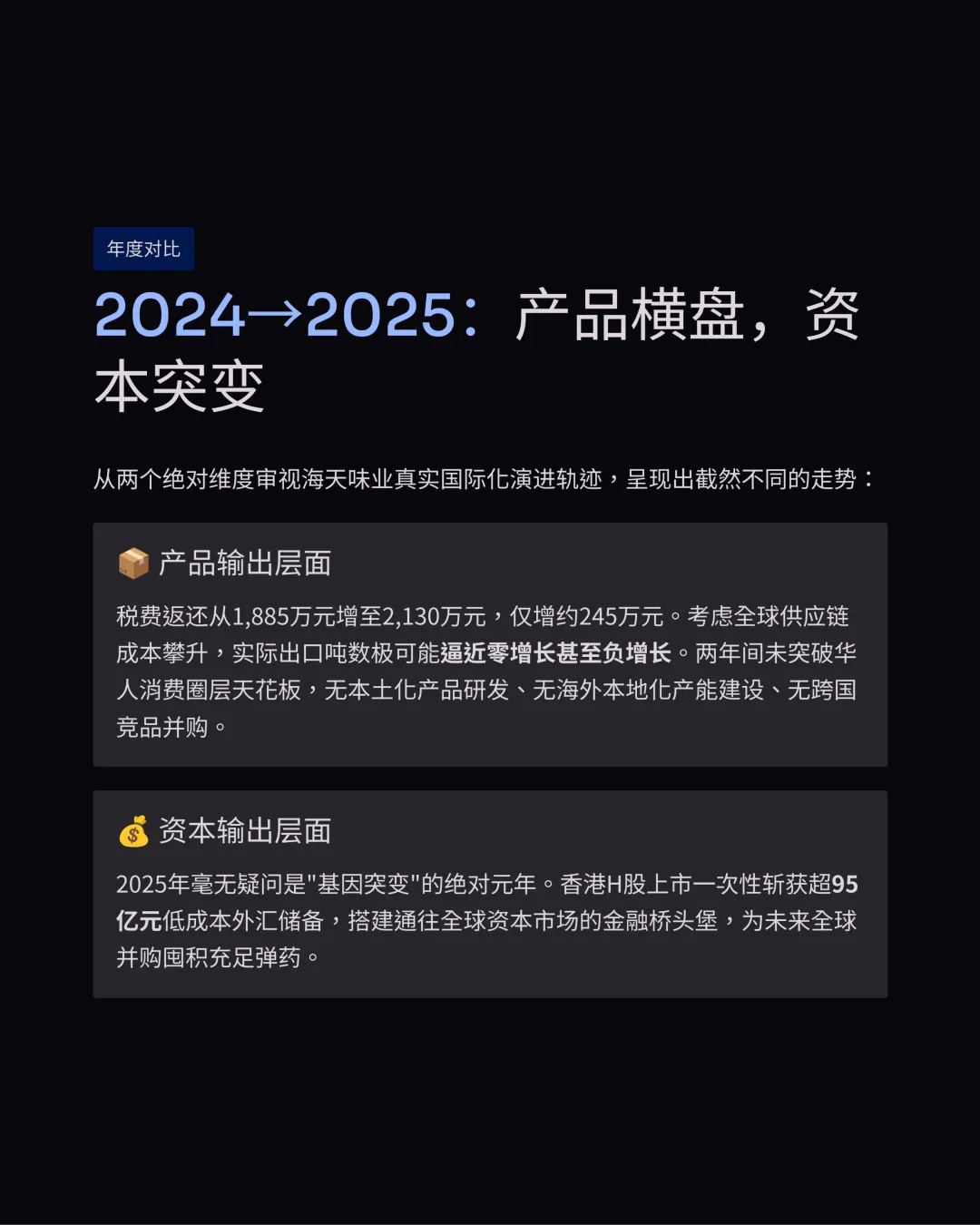 海天味业在2025年的真实国际化进程呈现出实体销售与资本运作非对称的双轨特征: