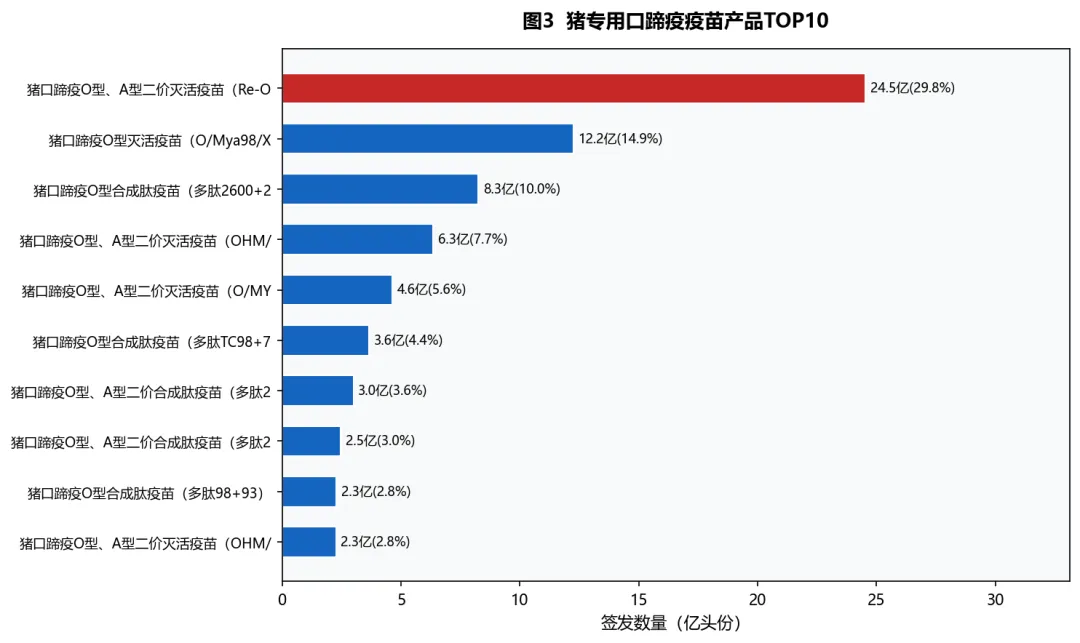 猪专用疫苗 | 82.42亿 | 58.1% | 2879批 | 含"猪口蹄疫"字样,专用于猪 |