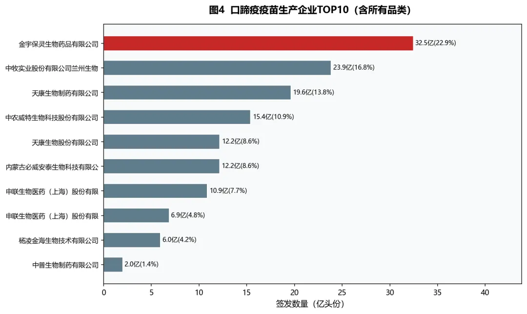 图4口蹄疫疫苗生产企业TOP10(含所有品类)