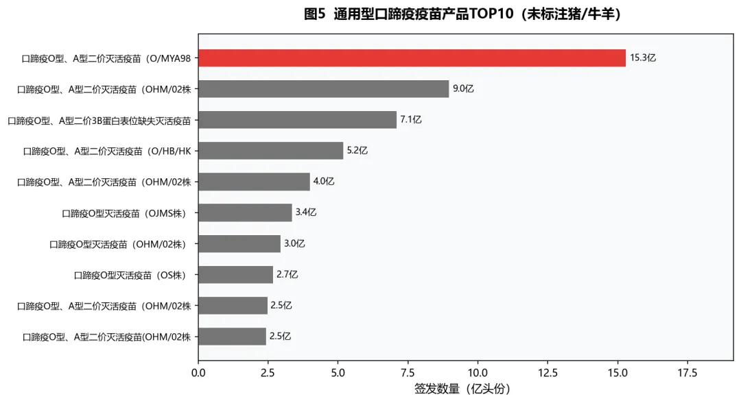 图5通用型口蹄疫疫苗产品TOP10(未标注猪/牛羊)
