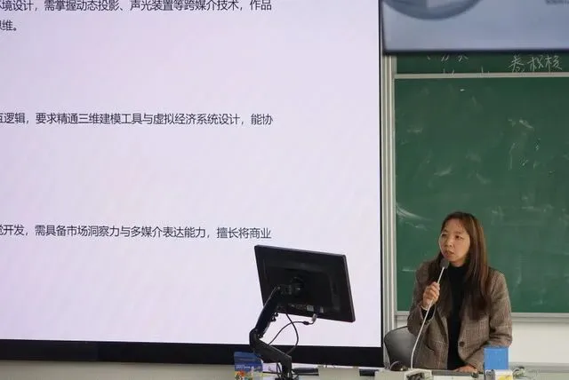 讲座以“趋势 - 路径 - 技能 - 资源”为脉络展开。余才华导师开篇从行业趋势切入,深入解析艺术产业格局,重点剖析数字艺术、元宇宙、文创与非遗等前沿领域的增长动能,帮助学生把握职业方向。