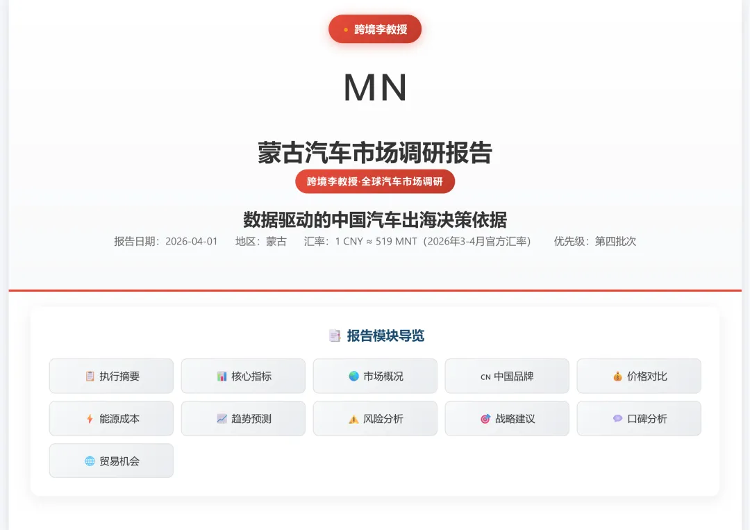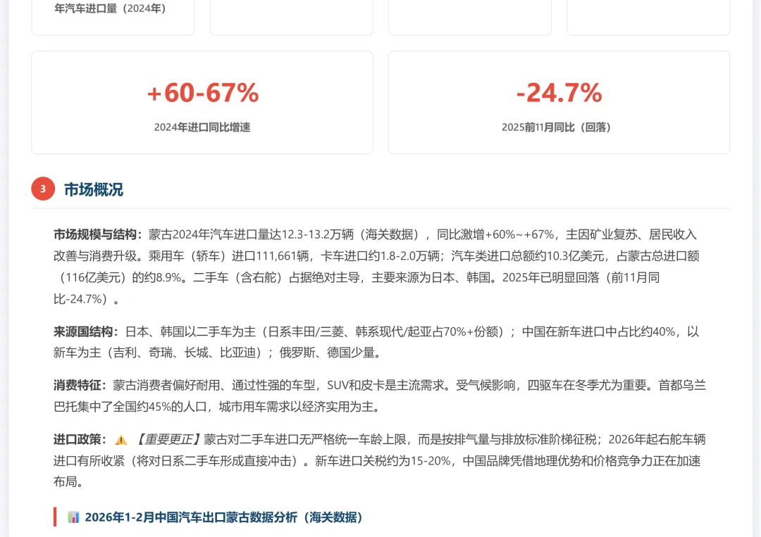 蒙古汽车市场调研报告2025和2026年1-2月份数据