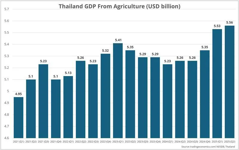 2025年泰国农业部门(含农林渔业)呈现“前高后低”的增长态势,虽全年仍保持正增长,但第三季度增速显著放缓,同时面临价格下跌与农户收入下滑的双重压力,不过政策支持与后续生产预期为行业恢复提供一定支撑。