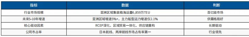 航运业属于周期性行业,但公司深耕亚洲区域航线,需求相对稳定;核心航线市占率第一形成竞争壁垒,近7年持续盈利,具备穿越周期的生存能力。