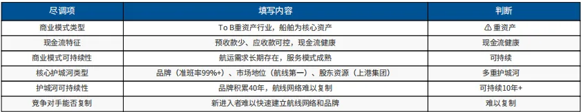 公司业务清晰易懂,行业具备成长空间,核心航线市占率领先,具备穿越周期的生存能力。虽然航运业具有周期性,但公司区域航线定位和品牌优势形成一定护城河。