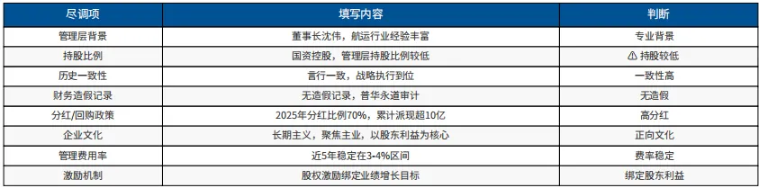 管理层专业、诚信,无造假记录;分红政策慷慨(2025年分红比例70%);国资背景确保稳健经营,上港集团控股83.3%提供强大股东资源支持。