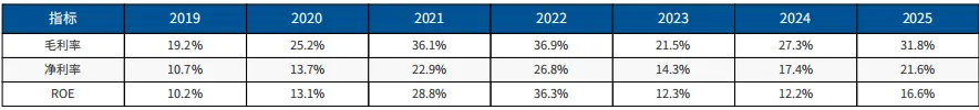 ● 2024-2025年:业绩强劲复苏,2025年净利润创历史新高(除2022年特殊周期高点)