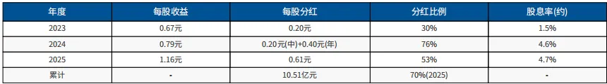 5. 股东回报丰厚:2025年分红比例70%,股息率约4.7%