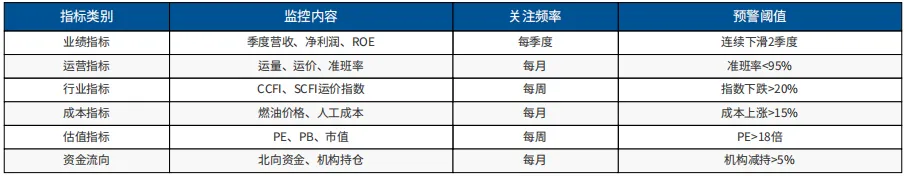 【周期操作策略】航运业具有明显周期性,可在周期底部(运价低迷、业绩下滑时)加仓,周期顶部(运价高涨、业绩高增时)减持。重点关注: