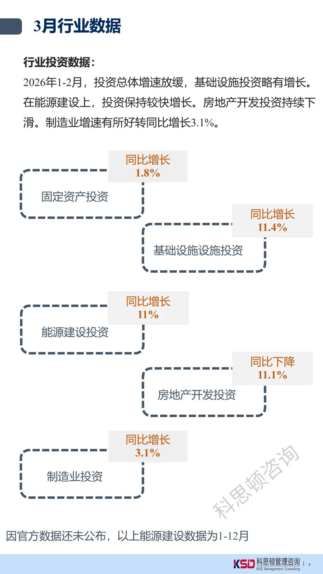 制造业投资方面,2026年1-2月,制造业投资同比增长3.1%。3、行业动态一览