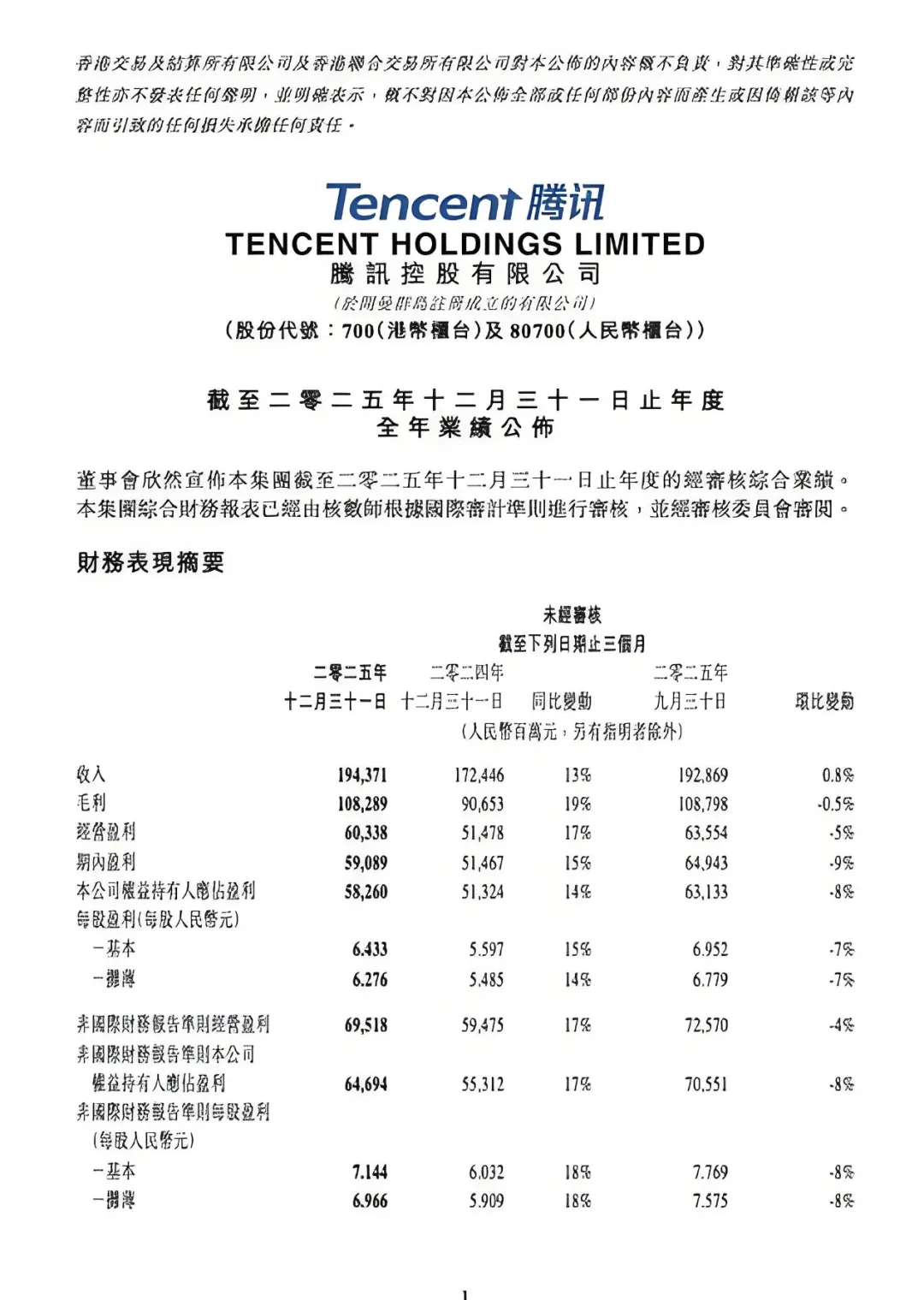 再来看腾讯。同样在3月底,腾讯交出了2025年的成绩单:全年营收7518亿元,同比增长13.9%;Non-IFRS净利润2596亿元,同比增长约15.8% 。这个数字有多夸张?有个对比很有意思:腾讯一家的利润,超过了阿里+拼多多+京东+美团+滴滴五家之和 。是的,你没看错,五家加起来都没打过腾讯一家。