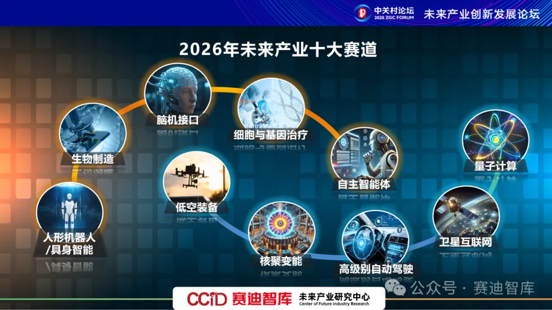 在2026中关村论坛年会上,赛迪研究院正式发布了《2026年未来产业十大赛道》报告。这份报告不仅是对过去一年产业发展的回顾,更是对未来技术演进和商业落地的一次精准洞察。