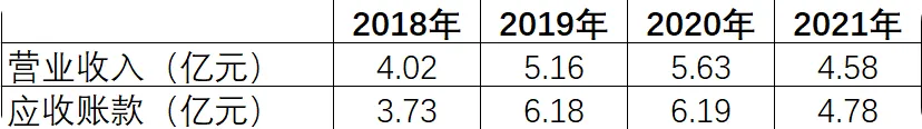 也就是说当年收入是打白条换来的,后面两年的数据,也差不多是白打换营收,2021年的数据似乎还说明了白条换营收也比较更难了(营收少了1亿元)。危险信号出现了!