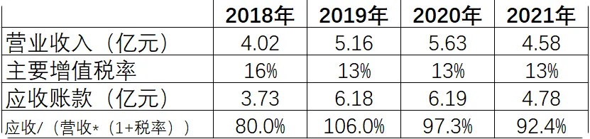 耶,两组数据对应起来看,似乎差距不大? 那么分析一下它的收现质量,即应收账款除以复原后收入数据(营业收入+增值税):