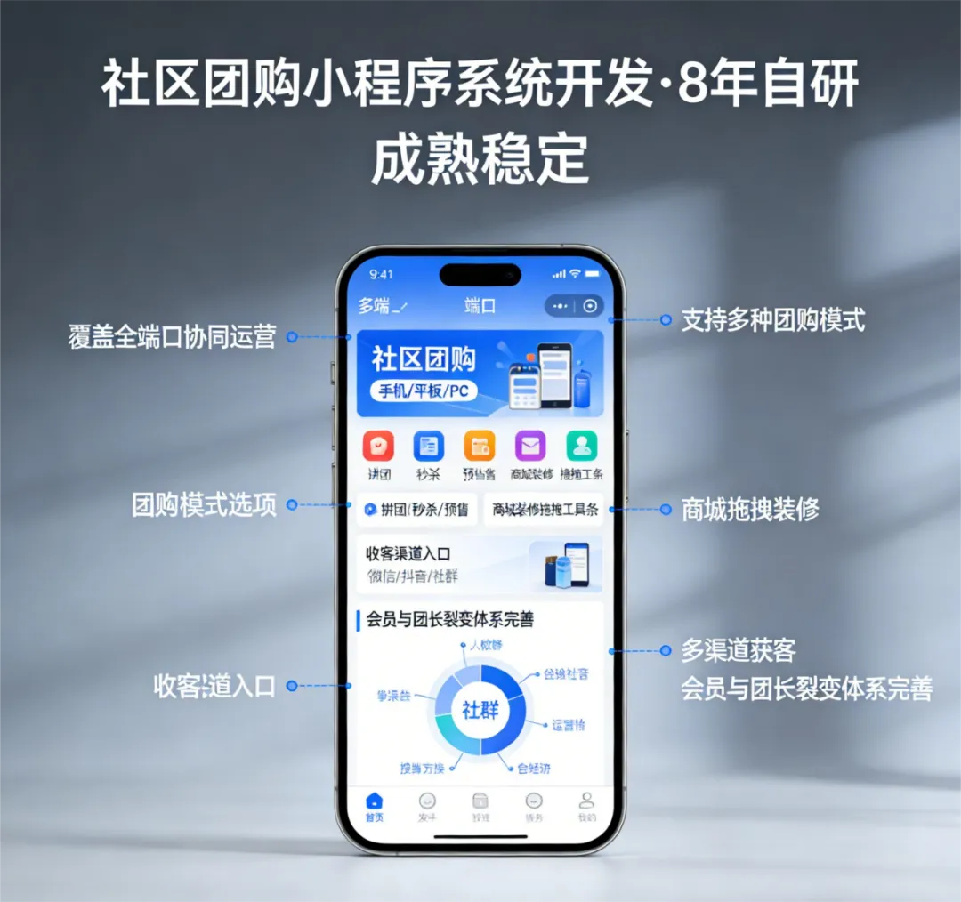 当下,社区团购行业已从粗放扩张迈入精细化运营新阶段,2026年国内用户规模突破8亿人,市场规模稳步攀升,成为各类市场主体数字化转型的重要赛道。中小商户、连锁品牌、区域零售巨头、中大型企业、连锁商超、社区连锁便利店、本地生活服务商、有特殊功能需求企业、多业态融合企业、大型企业、农业合作社,均迫切需要一套专业、稳定、适配自身需求的社区团购小程序系统,而选择靠谱的源头开发公司,成为解锁行业红利的关键。