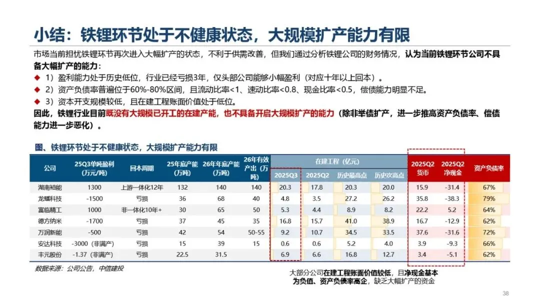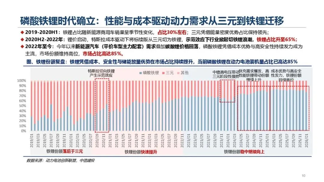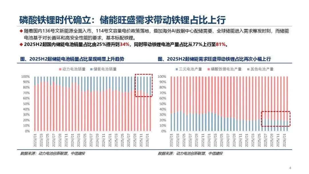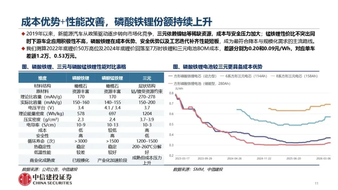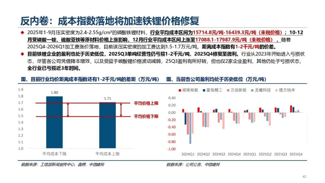 面对行业需求的快速增长,磷酸铁锂正极行业正经历着供需格局的显著改善。尽管2026年仍有较多产能投产,但受益于储能和动力市场的双重驱动,需求足以支撑新增产能,预计全年产能利用率将保持在80%以上。此外,随着高压密铁锂需求的提升,具备高压密产品生产能力的企业将迎来新的增长点。在行业反内卷政策的推动下,磷酸铁锂价格指数落地,企业盈利有望得到修复,头部企业凭借规模效应和一体化布局,将在市场竞争中占据优势地位。未来,随着新能源和储能市场的持续发展,磷酸铁锂正极行业将迎来更加广阔的发展空间。