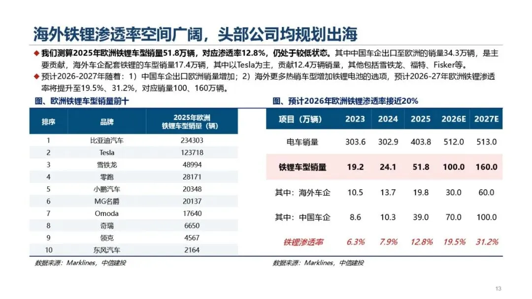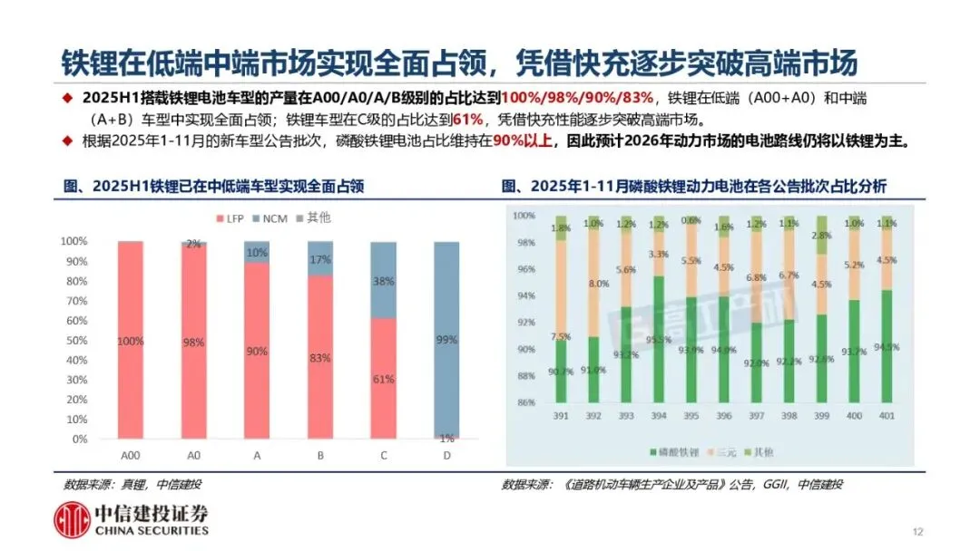 磷酸铁锂正极行业在锂电中游领域展现出强劲的增长势头,特别是在储能需求的爆发式增长推动下,成为唯一超额享受储能高增速的环节。随着全球储能进入需求爆发期,磷酸铁锂因其长循环寿命、高安全性和经济性,成为储能领域的首选技术路线。预计2026年全球储能电池需求将达到1005-1145GWh,带动磷酸铁锂正极需求大幅增长。同时,国内动力市场铁锂渗透率已达85%,且随着欧洲市场铁锂渗透率的提升,磷酸铁锂正极的全球需求将持续扩大,展现出远超行业平均水平的增速。