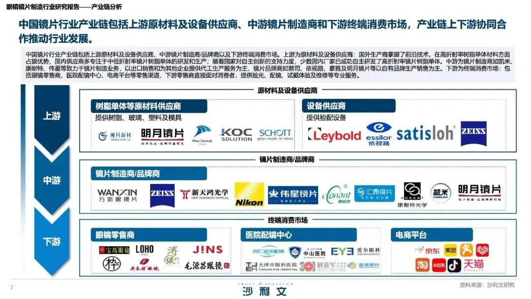 下游就是我们接触最多的眼镜店、医院配镜中心、电商平台。很多人觉得眼镜是暴利行业,其实终端门店赚的,更多是验光、配镜、售后的服务钱,还有就是利用信息差的溢价。前两年做线下调研的时候,我碰到过不少门店,把1.56的镜片当1.60的卖,消费者根本看不出来,这也是行业里最让人诟病的地方。