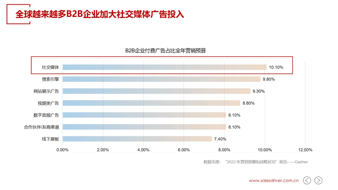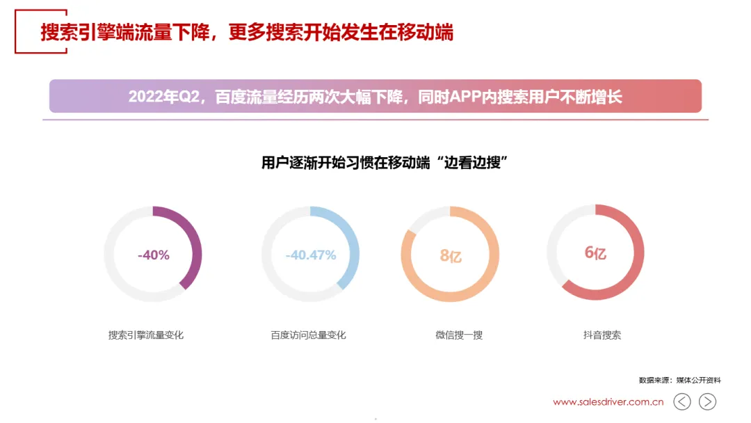 • 移动端成主战场,视频与社交平台广告份额持续上升:2022年中国互联网广告市场中,电商平台占比38.12%,视频类平台达23.03%并持续增长,而搜索类平台份额降至9.60%,连续四年下滑,B2B企业需加速向抖音、微信朋友圈、知乎等信息流平台迁移。