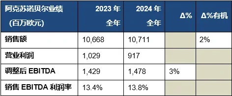 受重组成本影响,营业利润为9.17亿欧元(2023年:10.29亿欧元)