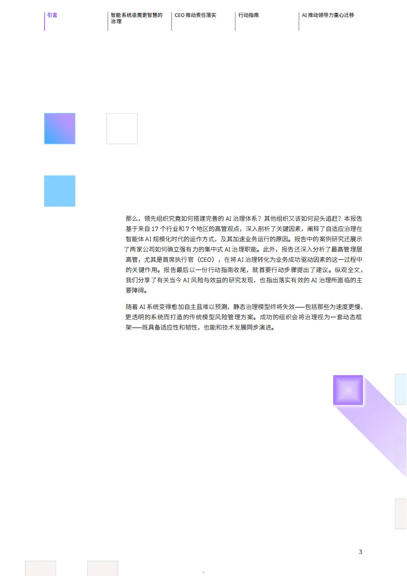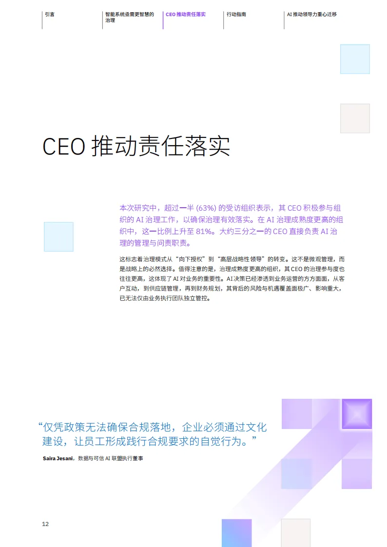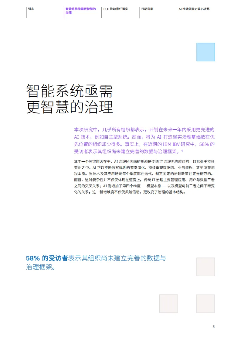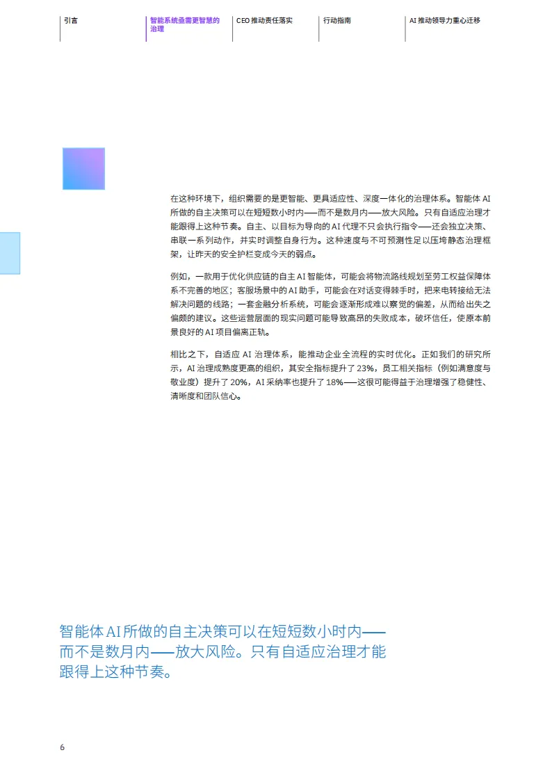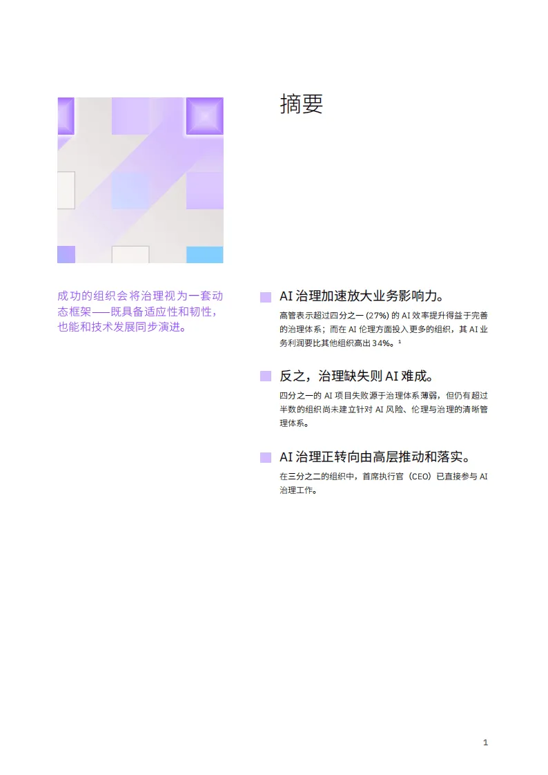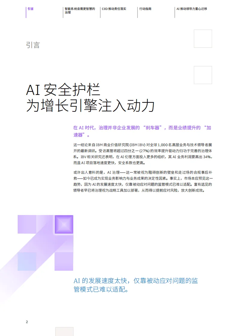 IBM商业价值研究院基于对全球1000名高层业务与技术领导者的调研发布报告,指出AI治理并非企业发展的“刹车器”,而是业绩提升的“加速器”,完善的AI治理体系是AI规模化应用时代企业实现业务价值的关键。
