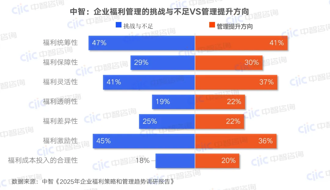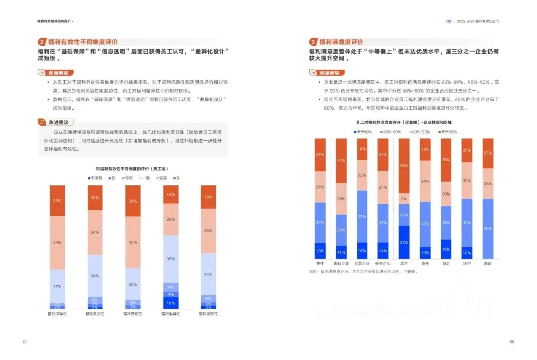 •提升方向:扩大激励型福利自选范围,结合群体差异设计分层弹性;优化福利平台功能,平衡选择自由与管理效率。