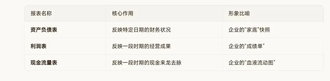 财务报表的核心是三张表,它们从不同角度反映了企业的财务状况。