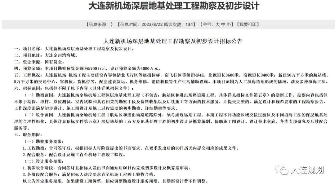 继新机场整体工程设计招标、航站楼及周边区域勘查招标完成后,新机场深层地基工程招标工作正式启动。