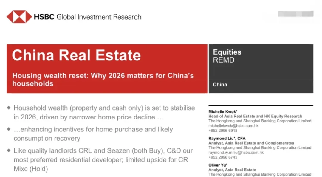 然而,近日全球知名金融机构汇丰发布了最新房地产研究报告,却得出一种载然相反的结论: