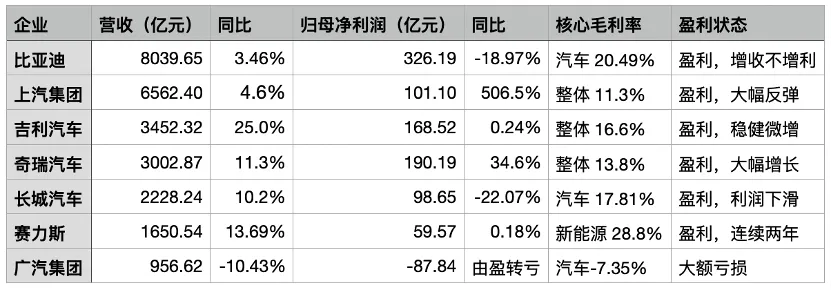 随着比亚迪、赛力斯、奇瑞、吉利、长城、广汽、上汽七大主流上市车企财报悉数出炉,行业分化的图景被彻底揭开。有的企业规模领先但利润下滑,有的企业触底反弹实现复苏,有的企业逆势增长盈利突出,也有的企业由盈转亏陷入困境。透过这份财报,我们能清晰看到:中国车市的行业洗牌已正式开启,全球化布局、高端化转型、产品结构优化,成为企业应对行业波动的关键路径。