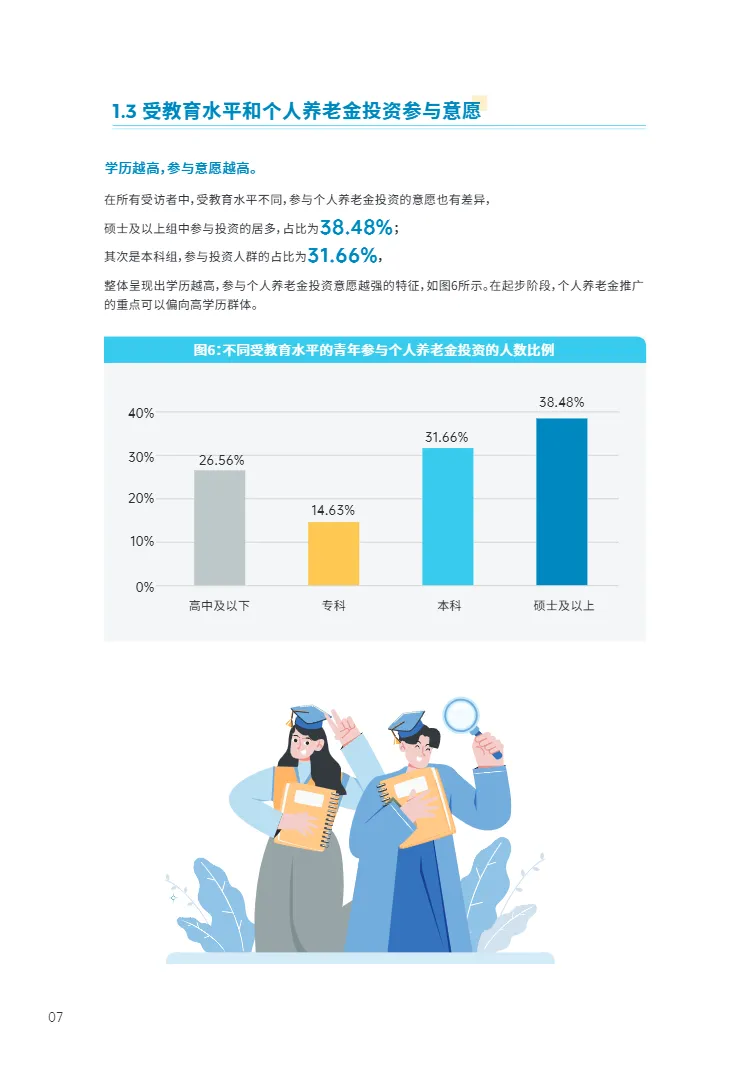 • 31-35岁高学历已婚已育群体是养老投资主力:该年龄段参与率高达34.12%,硕士及以上学历者达38.48%,已婚已育人群占比44.93%,显示出家庭责任与长期规划意识的强关联,提示跨境资管品牌可针对此类成熟家庭客群定制“子女教育+退休双账户”联动方案。