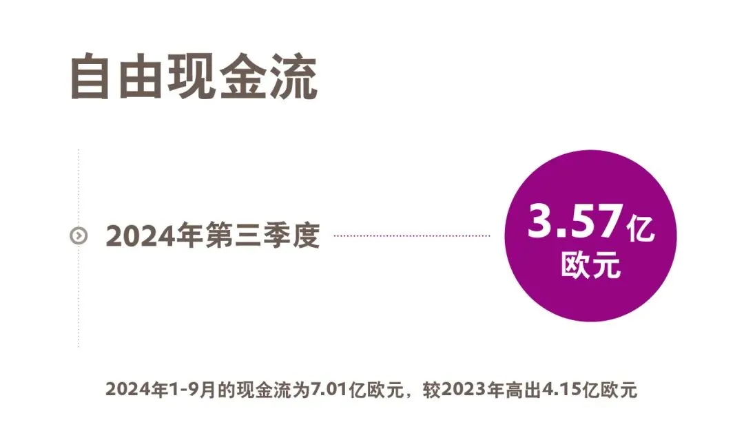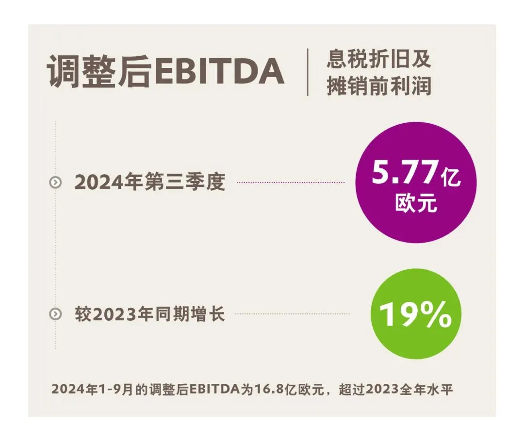 第三季度调整后息税折旧摊销前利润(EBITDA)增长19%,达5.77亿欧元 前九个月的自由现金流增长超过一倍 确认全年预期,调整后的EBITDA在19亿至22亿欧元之间
