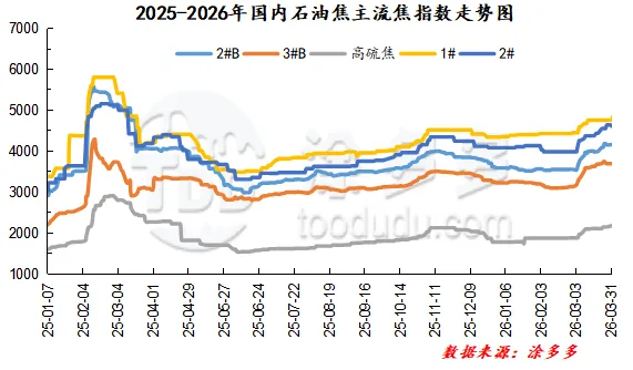 后市预测:供应方面来看:国产资源预期收紧,进口补充减少。二季度是国内炼厂延迟焦化装置的传统集中检修期。4月将有辽河石化、泰州石化、舟山石化等合计670万吨/年产能装置停工检修,预计4月国内石油焦产量将环比减少,产能利用率下滑。同时,受一季度末伊以冲突影响,原料运输受阻及贸易商操作谨慎,3月进口量已降至120万吨左右,预计4月进口量将进一步减少至100-115万吨。因此,二季度总供应量将呈现明显下降趋势,对市场价格形成核心支撑。不过,一季度累积的高位港口库存将在前期继续作为有效的资源补充,部分缓解供应紧张,但随着去库进程推进,其对价格的压制作用将逐步减弱。需求方面来看:二季度下游需求预计保持稳定增长,市场活跃度提升。传统炭素市场将迎来刚需采购旺季,预焙阳极企业开工率有望在电解铝高开工的带动下维持或小幅提升。负极材料市场已进入新一轮采购周期,企业订单充裕,采购情绪积极,对中低硫指标焦的拉动作用将持续。综合来看,市场业者者对二季度普遍持看涨或谨慎乐观心态,石油焦市场将在供应收缩与需求释放的双重作用下,维持震荡上行的走势,但需警惕港口高库存消化速度及下游对高价原料的接受程度可能带来的阶段性调整。