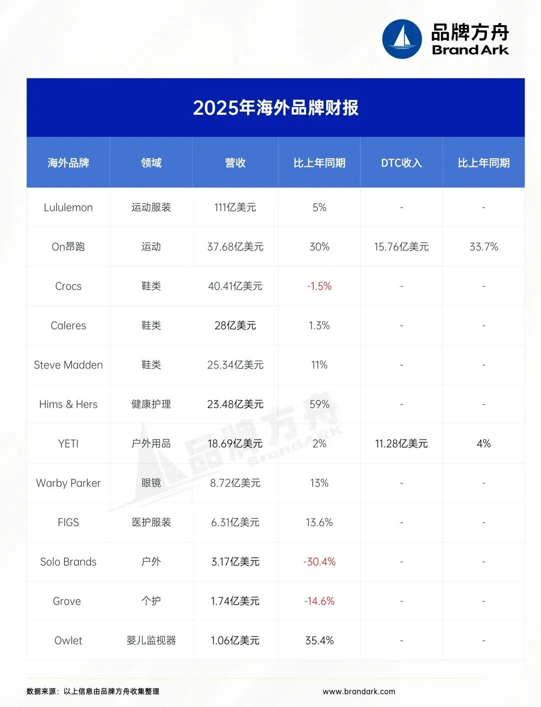 在本篇文章中,品牌方舟收集和整理了12家海外DTC上市品牌的最新财报,涵盖了运动、户外、鞋履、眼镜、医护服装、婴幼儿科技、个护、时尚奢侈等多个品类。