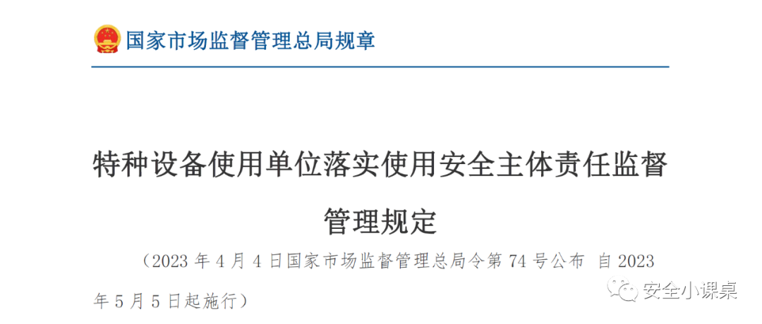 74号令:《特种设备使用单位落实使用安全主体责任监督 管理规定 》(2023 年 4 月 4 日国家市场监督管理总局令第 74 号公布 自 2023 年 7 月 1 日起施行)