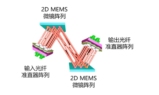 MEMS 光交换工作原理示意图