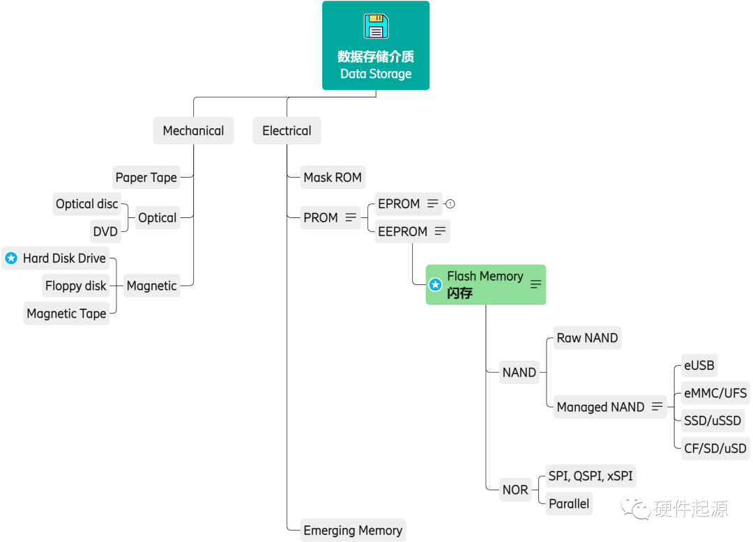 用户数据的存储媒介,要求断电后仍具备一定的数据保持能力(data retention),即非易失性——Non-volatile。目前主要的数据存储介质包括机械硬盘HDD、以NAND flash为介质的闪存(包括eMMC,UFS,SSD等)。
